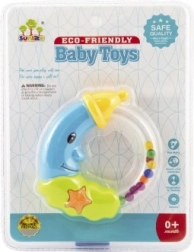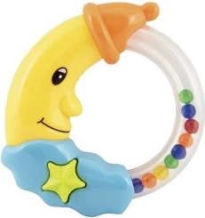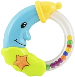 Een schattige rammelaar in de vorm van een maan die elke baby vanaf de geboorte zal verrukken. Dankzij de lichte kunststofconstructie ligt hij gemakkelijk in de hand en maakt hij bij beweging aangename geluiden die de waarneming stimuleren en kalmeren. Licht kunststof, aangenaam geluid, twee kleurvarianten, geschikt vanaf 0 maanden.