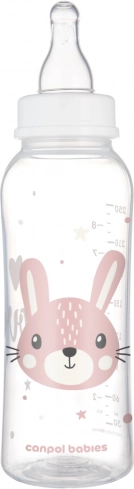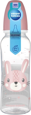 De CANPOL BABIES CUTE ANIMALS babyfles met een schattig konijnenmotief is ideaal voor de dagelijkse voeding. Het moderne, onbreekbare en veilige materiaal zorgt voor een lange levensduur, terwijl de duidelijke en nauwkeurige schaalverdeling helpt bij het controleren van de gedronken hoeveelheid. De siliconenspeen is zacht, smaak- en geurloos, geschikt voor herhaald desinfecteren en bevordert de gemakkelijke acceptatie van de fles.