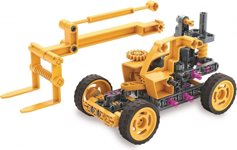 Deze educatieve bouwset uit de Science & Play-lijn laat je een telescopische heftruck bouwen met functionele mechanische elementen. Dankzij de zichtbare overbrengingen en scharnieren ervaren kinderen concreet hoe tandwielen, transmissies en wielaandrijving werken. De set ondersteunt STEM-vaardigheden en brengt de principes van mechanica spelenderwijs bij.