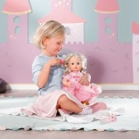 De Baby Annabell Kleine Zoete Prinses pop is gemaakt voor kleine prinsesjes met een fantasie. Wanneer je haar een kus geeft, antwoordt ze met kusgeluiden en blozen haar wangen. Daarbij sluit ze haar stralende blauwe ogen. Met haar kwalitatieve haren en eigen borstel kun je prachtige kapsels maken. Het zachte lichaam van deze pop is ideaal om mee te knuffelen en te ontspannen na een dag vol spel.