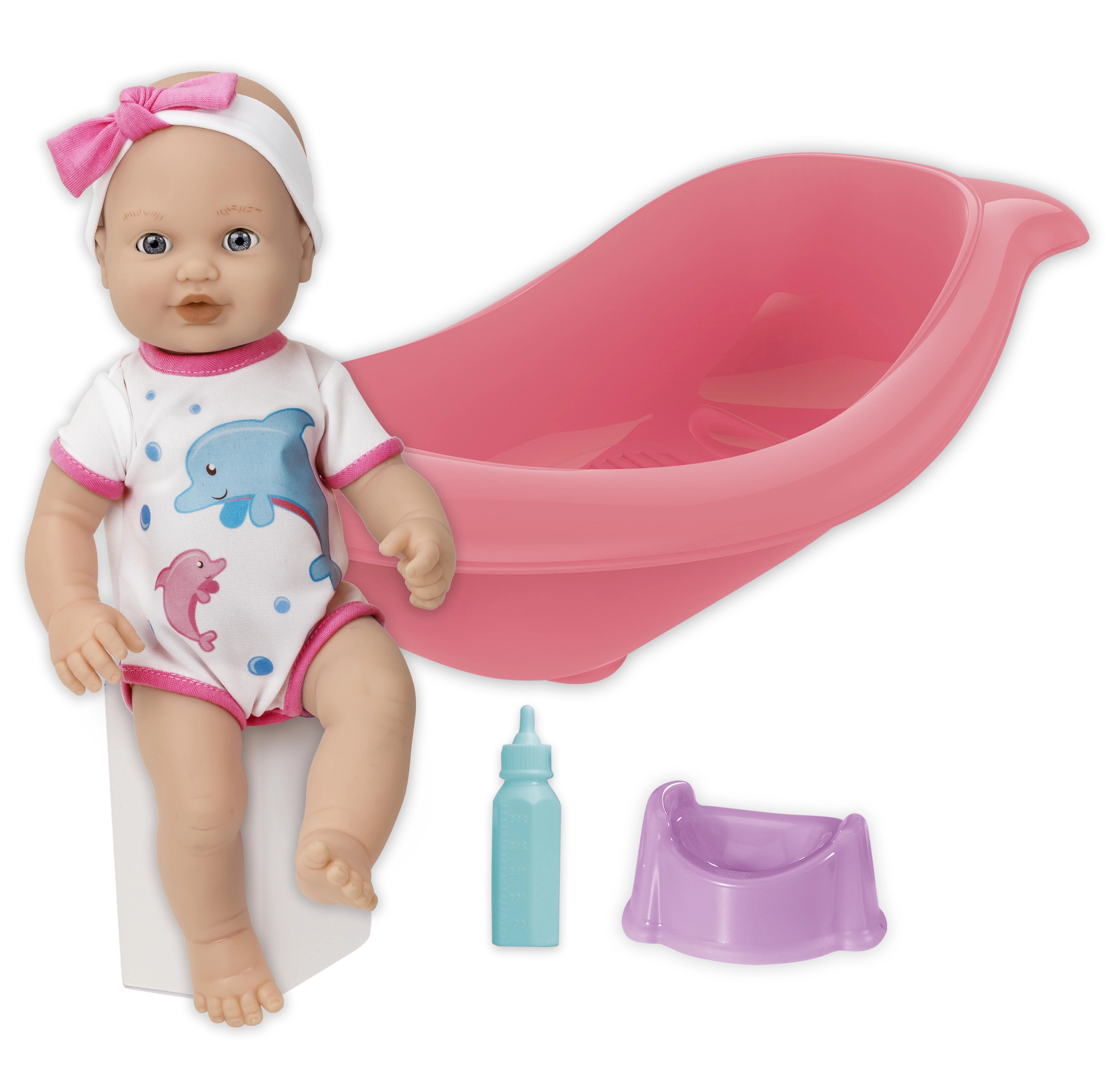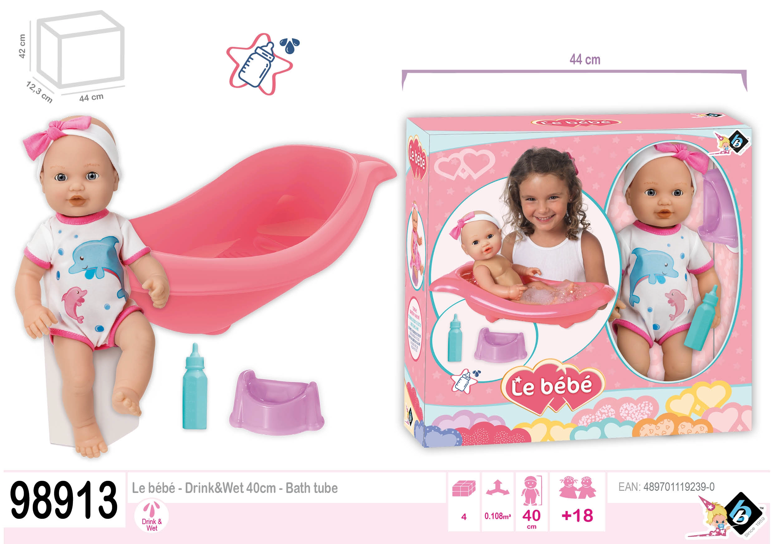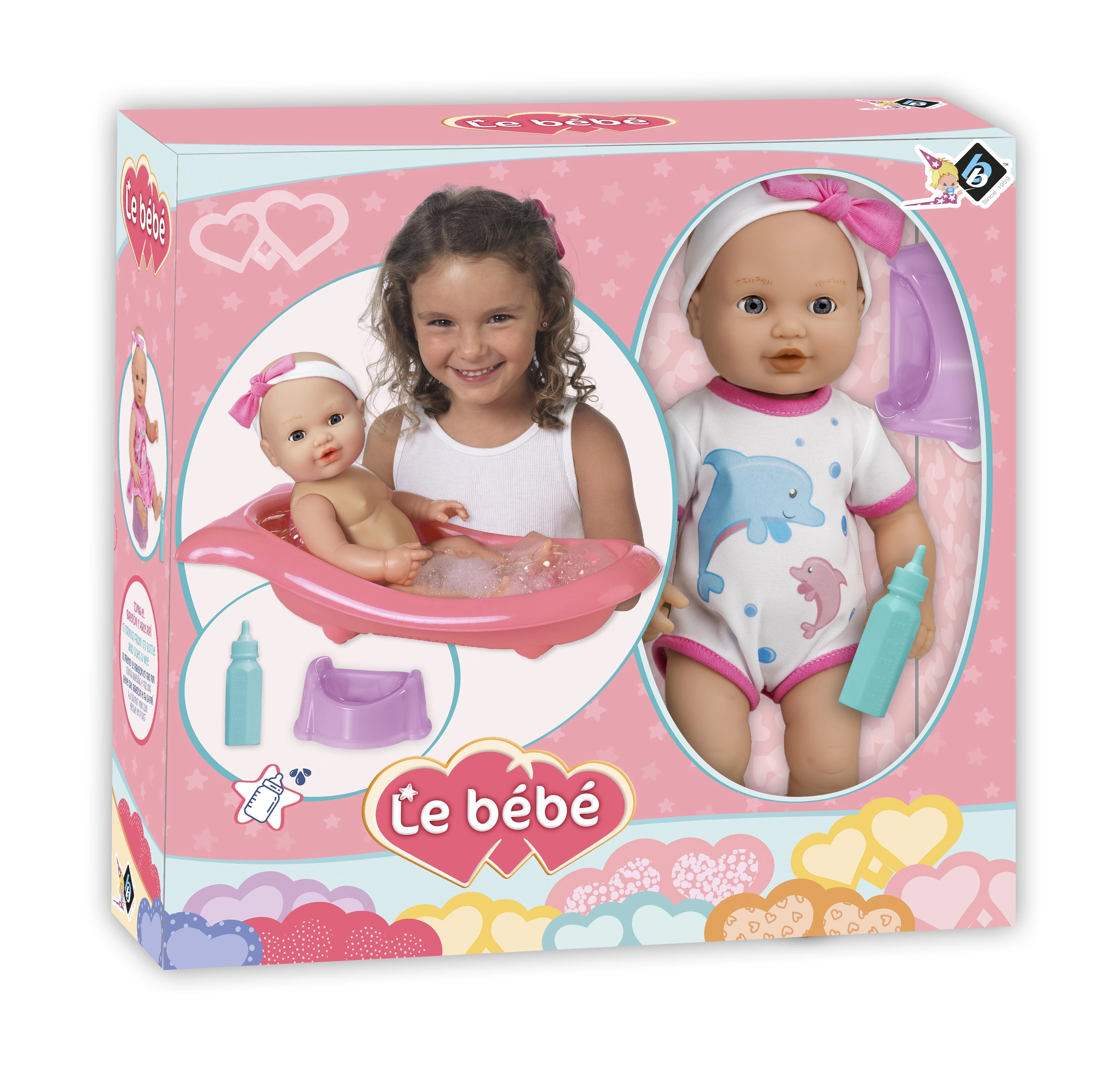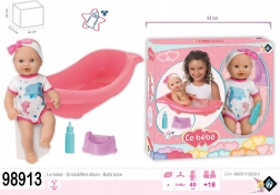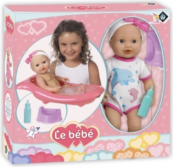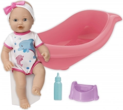 Een schattige pop met een set voor badderen en verschonen die elk kind zal verblijden. De verpakking bevat een badje van 41 cm, een flesje en een potje. De pop heeft een beweegbare kop en ledematen en sluit de ogen wanneer ze op de rug ligt. Dankzij de functie plassen na het drinken uit het flesje beleven kinderen een realistisch rollenspel in verzorgen.