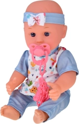 De praktische uitrusting omvat een eetset (kom, bestek en flesje), een potje, fopspeen met ketting, kleurrijke blokjes en een rammelaar. Het reisbedje met ademende gaaszijden en tas is ideaal om mee te spelen en op te bergen. Dankzij de uitgebreide accessoires bootsen kinderen eenvoudig echte babyverzorging na en ontwikkelen ze communicatie en fijne motoriek.