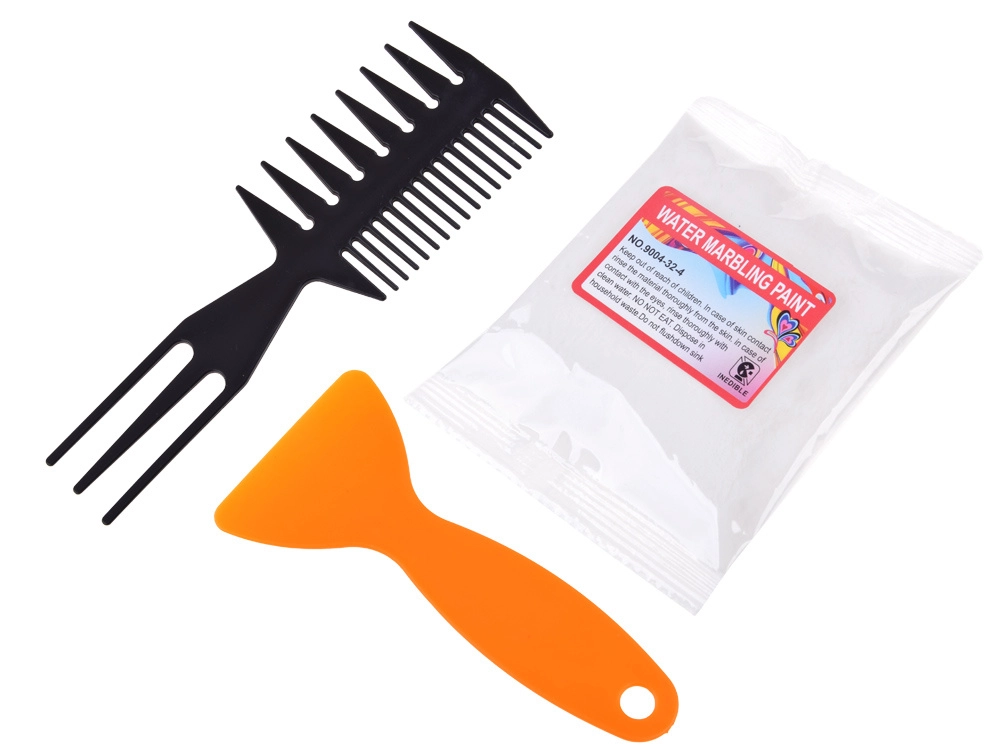 De speciale kam en tools helpen je om traditionele en moderne marmermotieven in enkele minuten te maken.