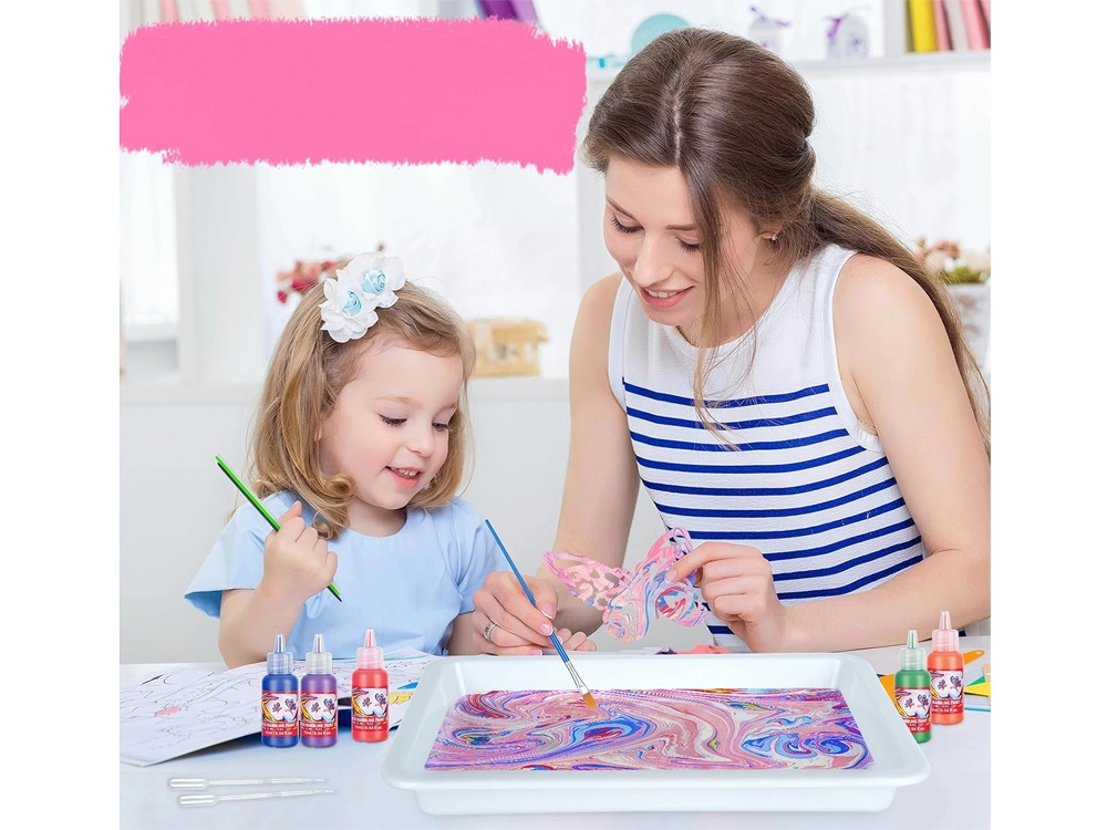 Ontdek de magie van de eeuwenoude techniek Ebru-marmeren en creëer unieke patronen op het wateroppervlak. Complete creatieve set met 12 levendige kleuren, bakje, papier en gereedschap voor eenvoudig thuis creëren. Ideaal voor kinderen en volwassenen, ondersteunt creativiteit, concentratie en fijne motoriek.