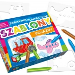 Creatieve set sjablonen met kleurpotloden voor kleine kunstenaars. Dankzij de sjablonen tekenen kinderen eenvoudig de contouren van verschillende voertuigen en ontwikkelen ze hun fijne motoriek en fantasie. In de verpakking zitten ook kleurpotloden, een puntenslijper/potlood en een blok papier, zodat ze meteen na het uitpakken kunnen beginnen. Ideaal voor de eerste tekenoefeningen en het oefenen van vormen – snel en gemakkelijk overtrekken, 8 verschillende afbeeldingen, 16 sjablonen, alles in één verpakking.
