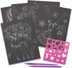 De NEBULOUS STARS krasset is ideaal voor de ontwikkeling van creativiteit, fijne motoriek en geduld. Kinderen onthullen met de meegeleverde tools kleurrijke motieven en creëren originele afbeeldingen aan de hand van sjablonen of hun eigen fantasie. Het verhaal van Isadora geeft het knutselen een magische sfeer.