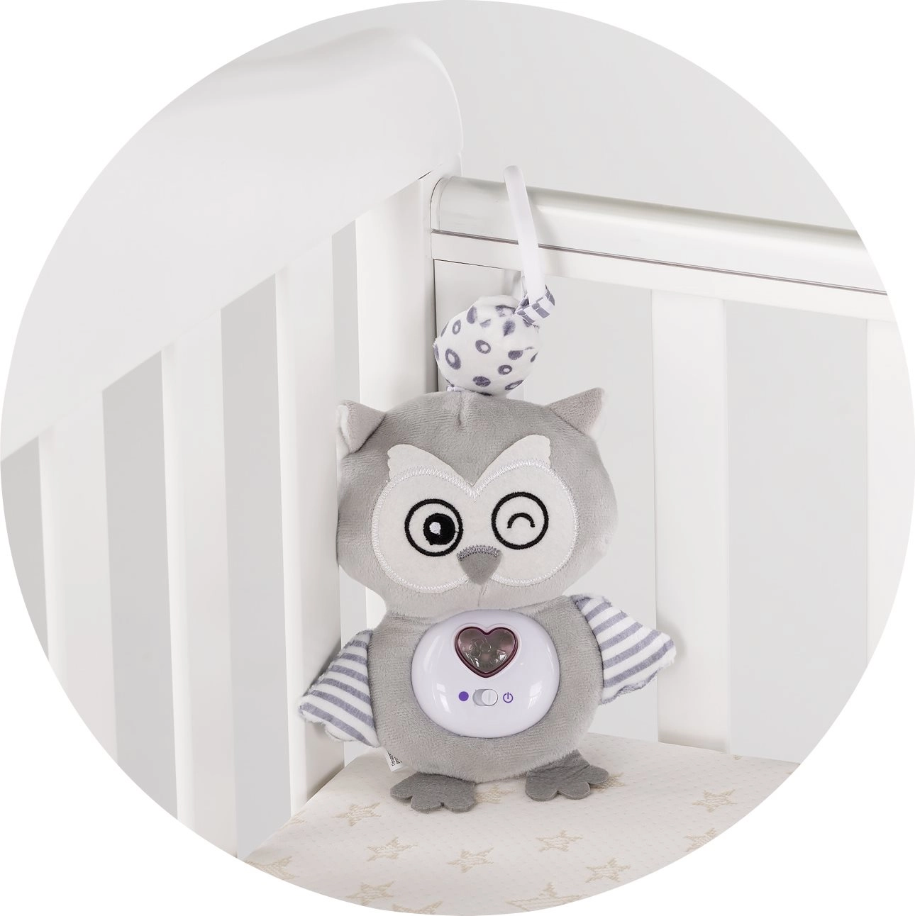 Haal rust en vermaak binnen handbereik. Het pluchen uiltje CHIPOLOINO Owl combineert rustgevende melodieën, zacht licht en knuffelzachte materialen – perfect om je baby te kalmeren en te vermaken tijdens het inslapen en tijdens wandelingen.
