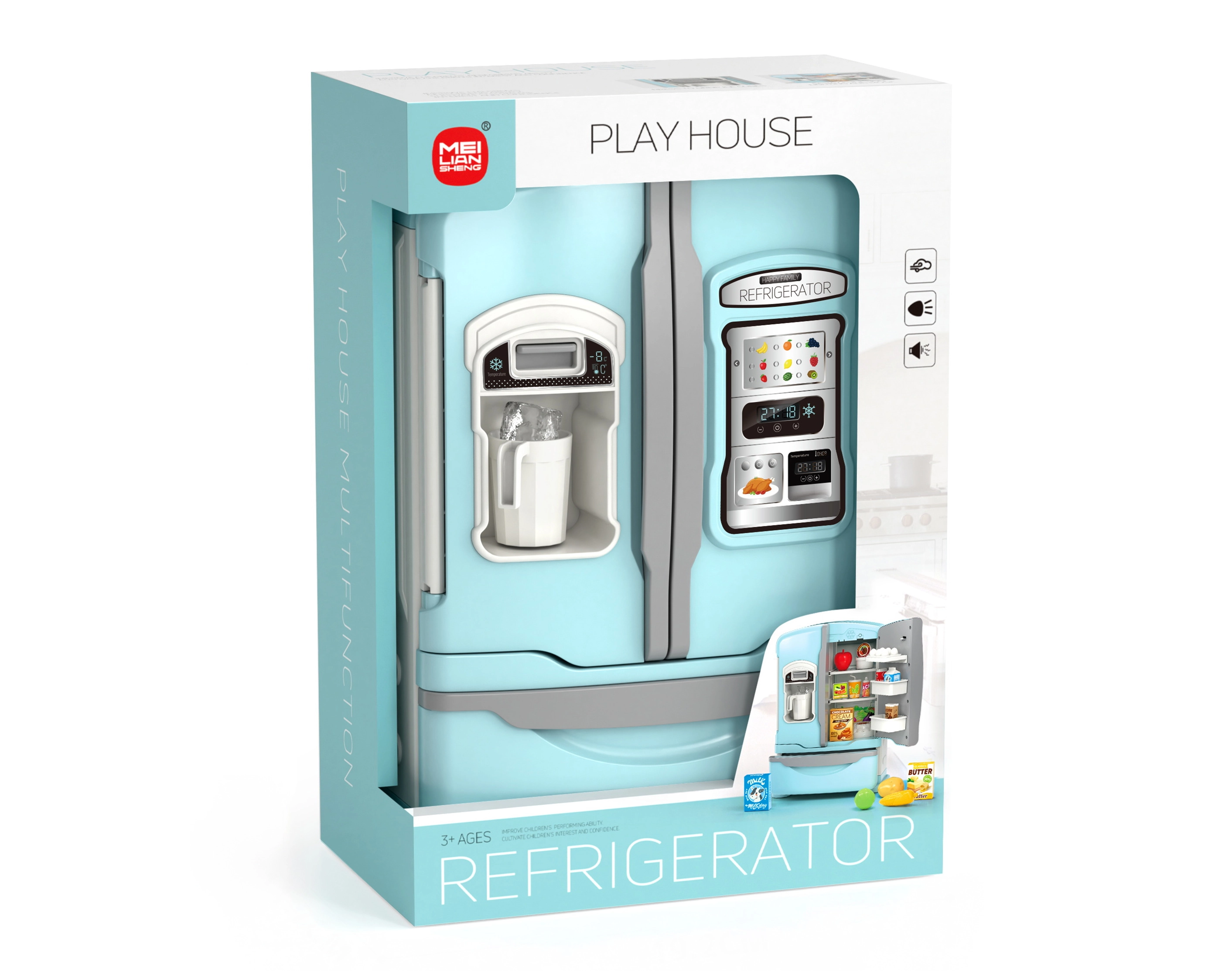 Een leuke kinderkoelkast van 26,5 cm met realistische licht- en geluidseffecten, een handige aan/uit-schakelaar en een magische nevelfunctie bij het openen. Giet gewoon water in de opening bovenaan en het spel kan beginnen. Batterijen 3× AAA zijn niet inbegrepen.
