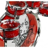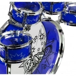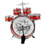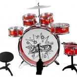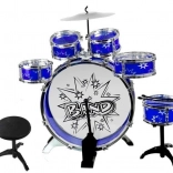 De set bevat een grote basdrum met pedaal, een staande snaredrum, een mid tom, drie kleine toms, een bekken en een comfortabele kruk om op te zitten. Dankzij de compacte afmetingen past hij in de kinderkamer en motiveert hij kinderen tot muzikale ontwikkeling, creativiteit en coördinatie van handen en voeten.