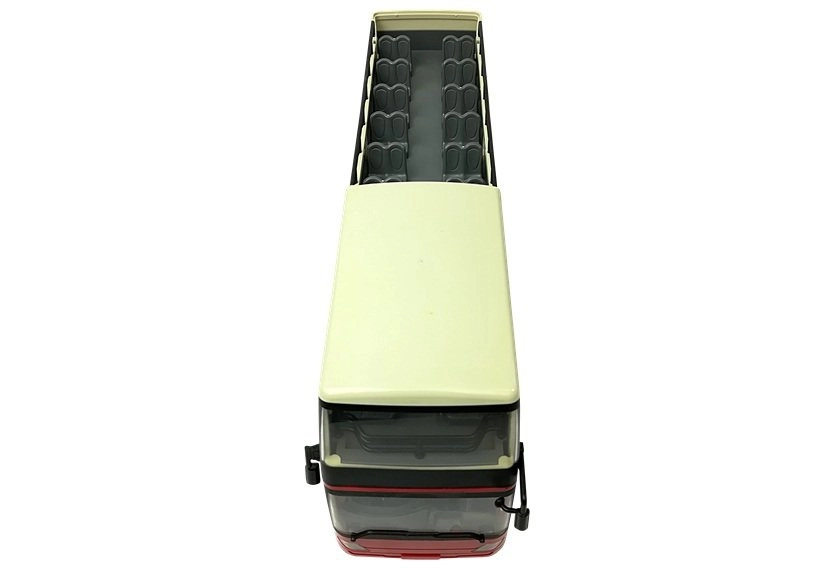 In de verpakking vind je een 4,8 V oplaadbare accu en een USB-oplader, zodat de bus snel klaar is om te rijden. Met de meegeleverde leuningen bouw je de bovenverdieping eenvoudig om tot een open cabrio-sightseeingbus. Zachte rubberen banden bieden goede tractie en stille loop op verschillende ondergronden.