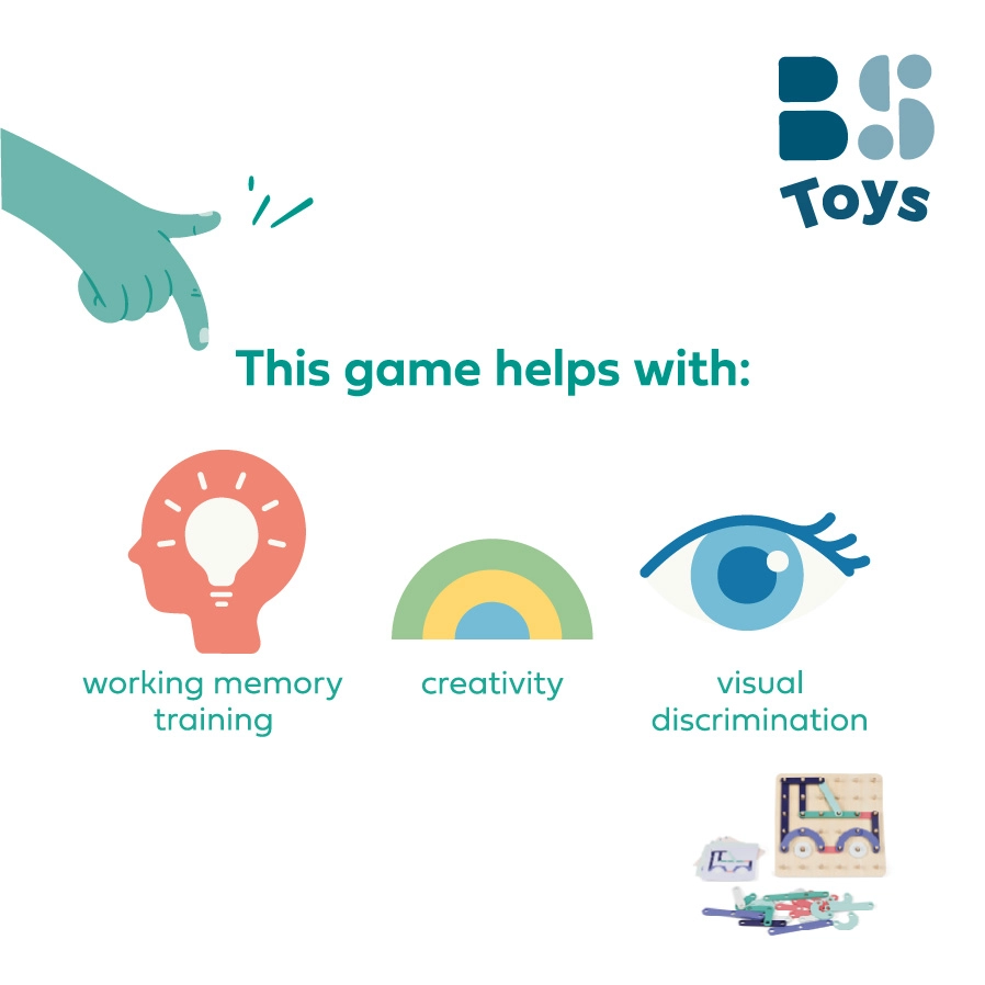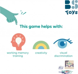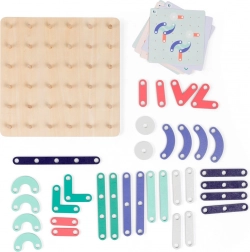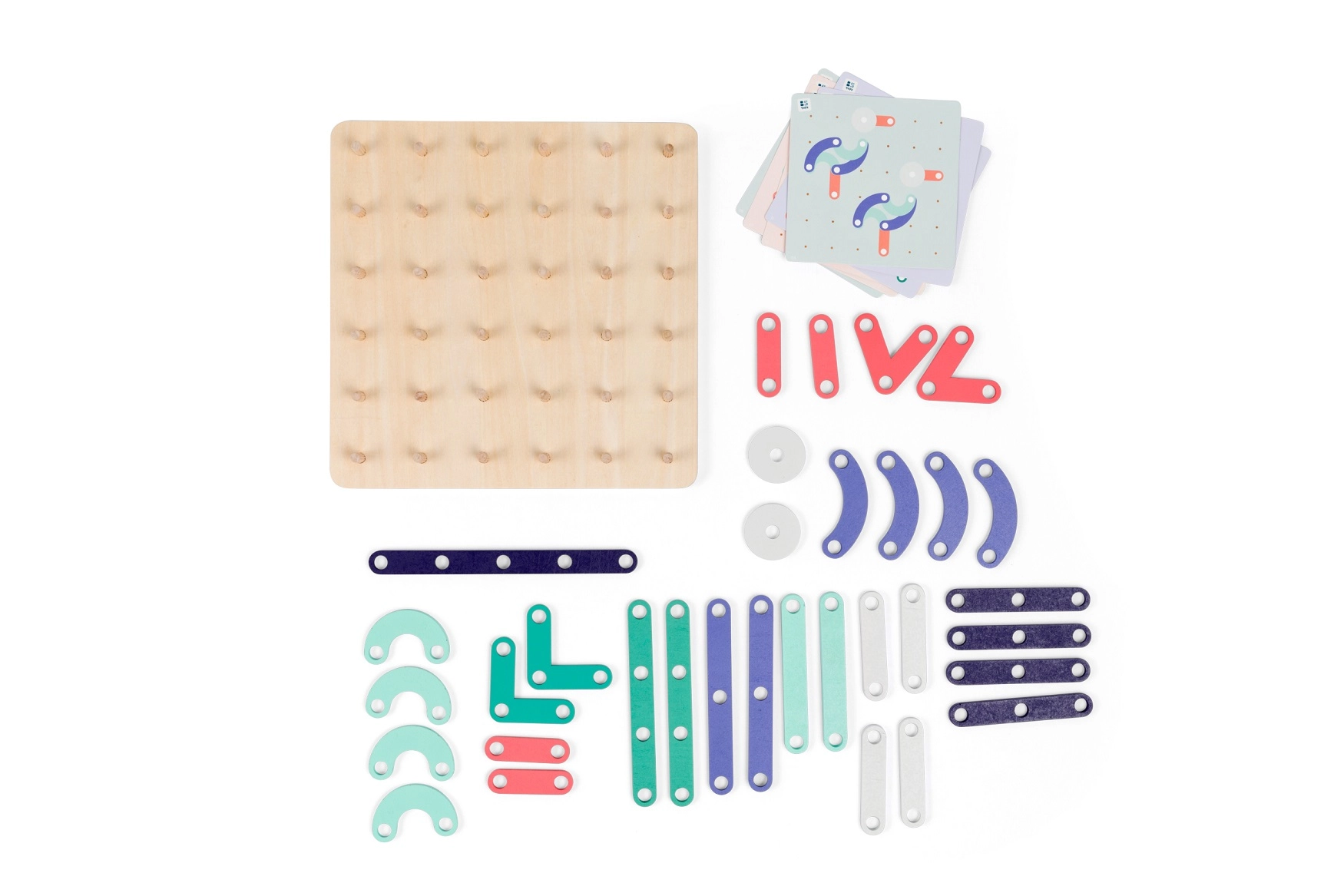 GEOPLANK is een creatief spel dat de natuurlijke nieuwsgierigheid van kinderen stimuleert. Met kleurrijke houten stukjes kunnen kinderen originele afbeeldingen maken, motieven van kaarten natekenen of hun eigen composities bedenken. Het spel ontwikkelt visuele waarneming, logisch denken en oog-handcoördinatie.