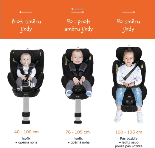 Met één beweging draai je het stoeltje naar de deuropening, gordel je het kind moeiteloos vast en draai je het daarna terug in de veilige positie tegen of met de rijrichting in.