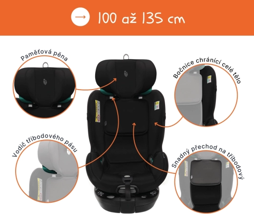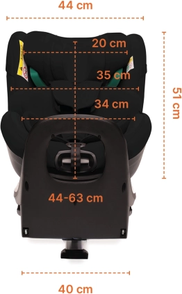 Voor de allerkleinsten is er een meerdeelige newborn-inleg van traagschuim die je stap voor stap kunt aanpassen aan de groei. De 5-puntsgordel met IMMI-sluiting beveiligt tot 19,5 kg; daarna kun je overschakelen op de 3-punts autogordel. De zitting is geventileerd voor minder transpiratie en er zijn 3 ligposities in beide rijrichtingen beschikbaar.