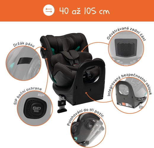 De robuuste polypropyleen schaal en geïntegreerde SIP-beschermers verhogen de veiligheid bij een zijdelingse botsing en voldoen aan de nieuwste Europese i-Size-eisen.