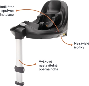 Onafhankelijke ISOFIX‑connectoren, een stabiliserende steunpoot en duidelijke indicatoren voor correcte installatie zorgen voor een veilige bevestiging in enkele seconden. Losmaken gaat comfortabel via de vergrendeling.