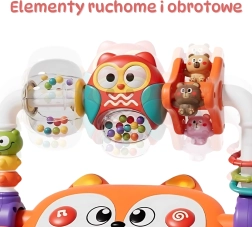 draaibare uil met rammelaars, dierfiguurtjes, gekleurde ringetjes/balletjes
