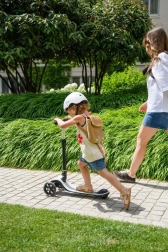 MoMi SAN is de ideale eerste step voor jonge rijders. Drie wielen zorgen voor uitstekende stabiliteit, terwijl het lage en brede deck veilig op- en afstappen mogelijk maakt. De LED-wielen zorgen voor plezier en verbeteren tegelijk de zichtbaarheid tijdens het rijden.