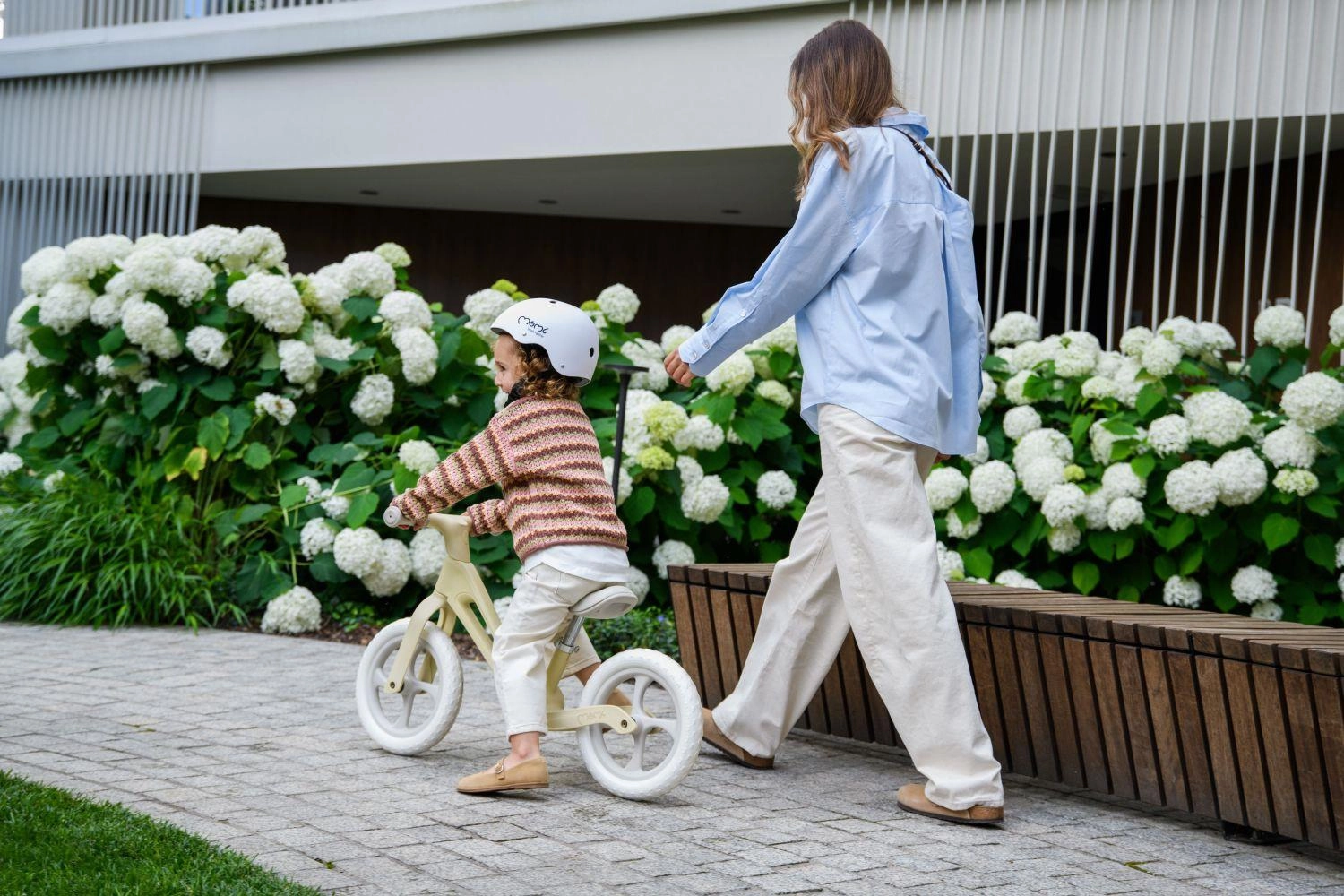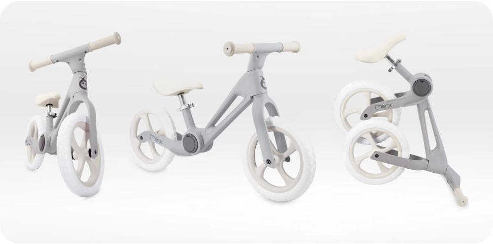 MoMi Noru tilt de eerste meters op de fiets naar een hoger niveau. Het unieke met-knop opklapbare frame maakt vervoer en opslag eenvoudig – van auto tot thuis, zonder gedoe. De lichte constructie van duurzaam nylon weegt slechts 3 kg, zodat ouders hem makkelijk met één hand dragen.