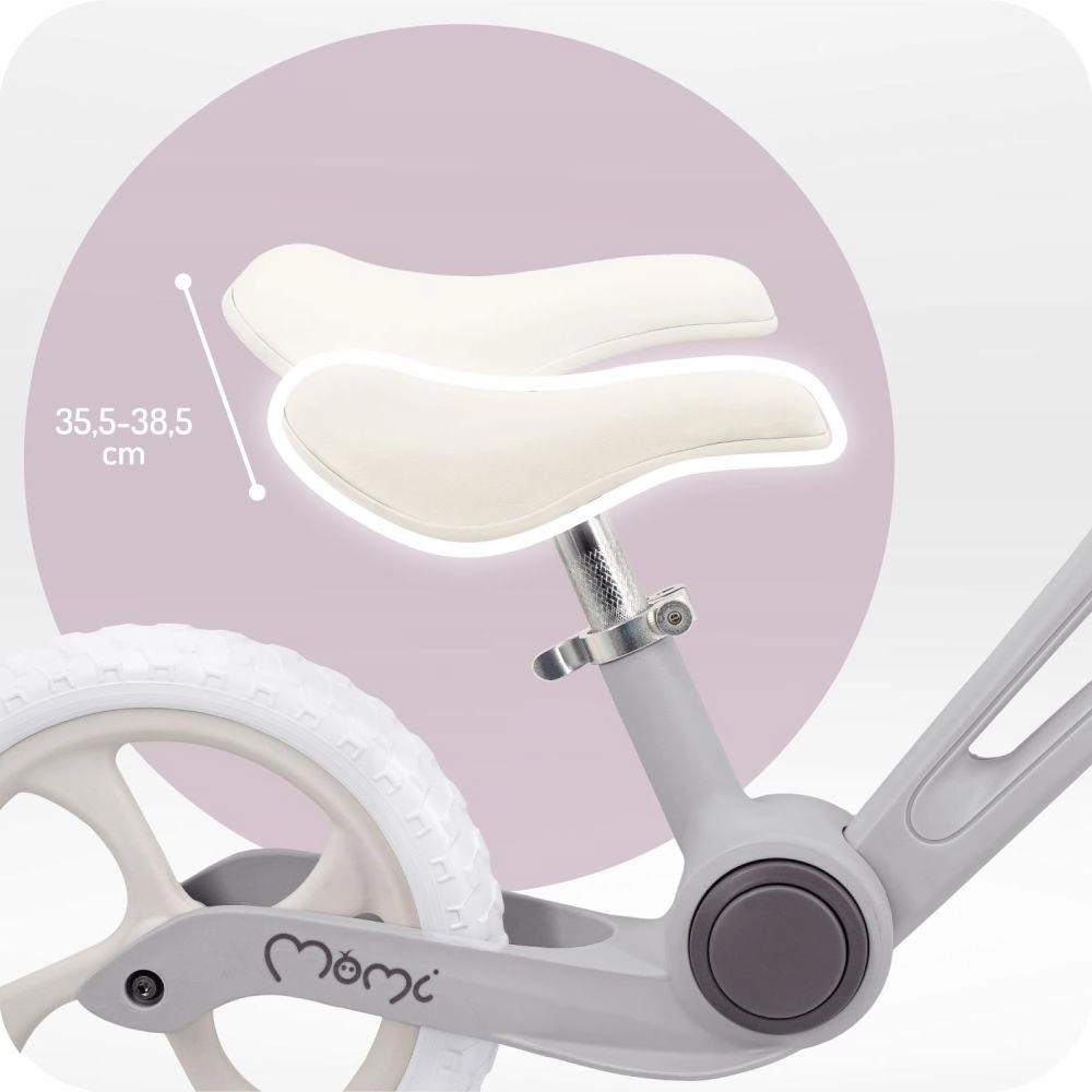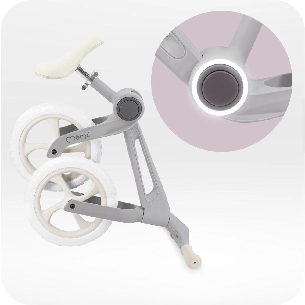 De lichte en praktische MoMi Noru loopfiets met knop-inklapmechanisme is ideaal voor kleine rijders vanaf 2 jaar. Biedt een laag gewicht, gereedschapsloze zadelhoogteverstelling en tubeless EVA-wielen van 12" voor comfortabel en veilig rijden. Dankzij het nylon frame en antislip handvatten leren kinderen met vertrouwen hun evenwicht, binnen en buiten.