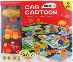 Deze set biedt kinderen uren speelplezier en stimuleert de fantasie. Het praktische speelkleed met wegen dient als speelondergrond, terwijl de drie meegeleverde voertuigen van ca. 8 cm perfect in kinderhanden passen. Dankzij de stevige kunststof zijn de autootjes duurzaam en klaar voor dagelijkse races.