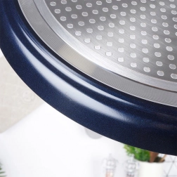 De roestvrijstalen inductieplaat met gestippelde structuur zorgt voor snel opwarmen en een stabiele temperatuur op alle soorten kookplaten, inclusief inductie.