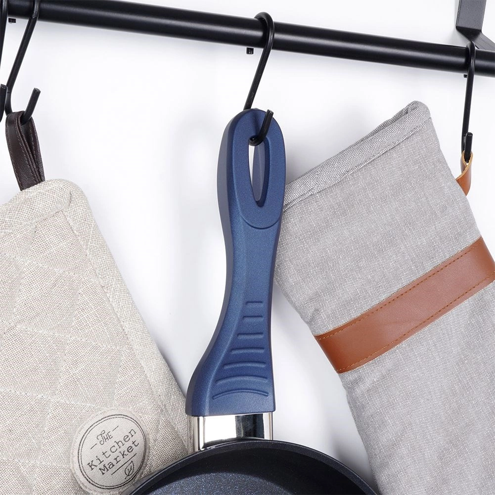 De ergonomische handgreep met zacht siliconen ligt goed in de hand, glijdt niet en blijft koel, zelfs bij langer koken.