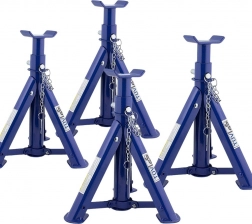 Professionele set van 4 stalen assteunen met een draagvermogen van 2 t per stuk (totaal tot 8 t) en hoogteverstelling van 27,7–36,5 cm. De robuuste constructie, stalen borgpen en TÜV-certificering zorgen voor een veilige en stabiele ondersteuning bij werkzaamheden aan wielen, remmen of onderstel.