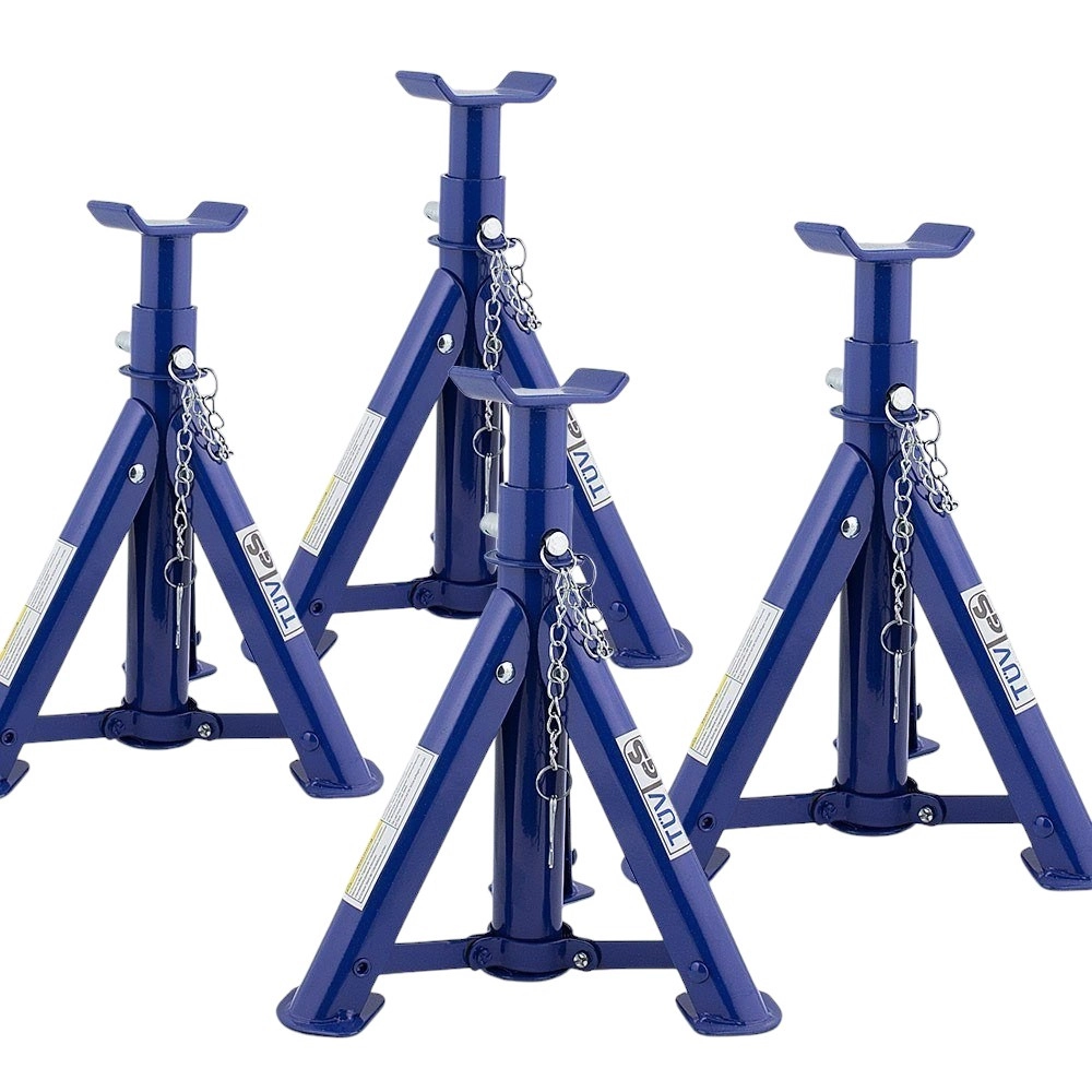 De set bevat 4 stuks, zodat je het volledige voertuig eenvoudig en veilig kunt ondersteunen. De TÜV-certificering bevestigt dat aan Europese veiligheidsnormen wordt voldaan, wat dit een betrouwbare keuze maakt voor professioneel en hobbymatig gebruik.