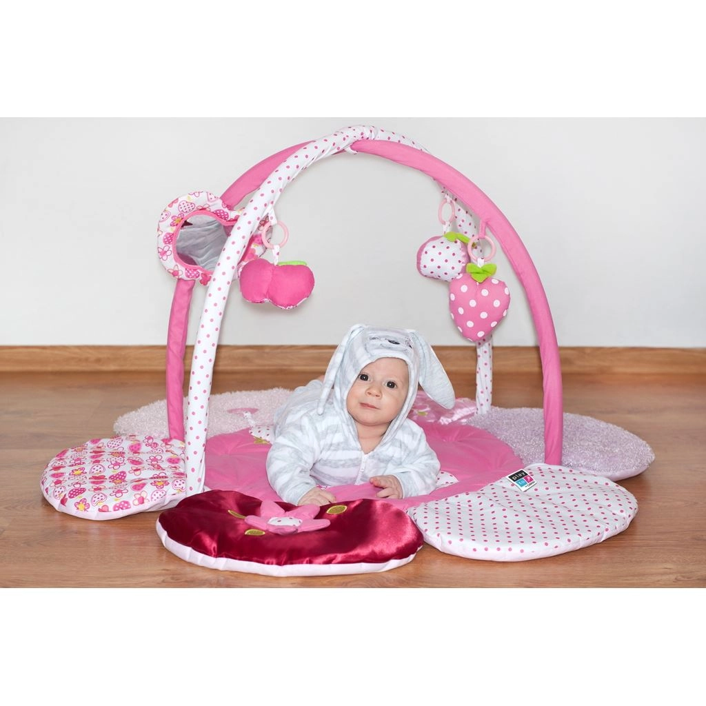 Dit stijlvolle speelkleed in bloemvorm creëert een knus en veilig hoekje voor spelen en rust. Het zachte, gewatteerde oppervlak zorgt voor comfort op de buik en rug, terwijl de afneembare speelboog met schattige speeltjes motiveert om het hoofdje op te tillen, te strekken en de eerste ontdekkingen te doen.