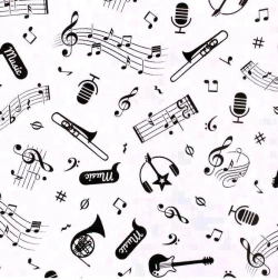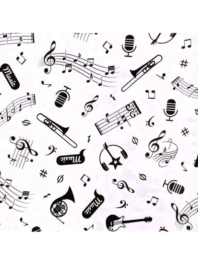 - Effen met print van noten en muziekinstrumenten