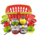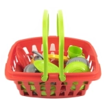 Ontdek een wereld vol fantasie met onze kookset met kunststof winkelmandje. Deze set bevat alles wat een kleine chef-kok nodig heeft voor zijn kook- en boodschappenspel: