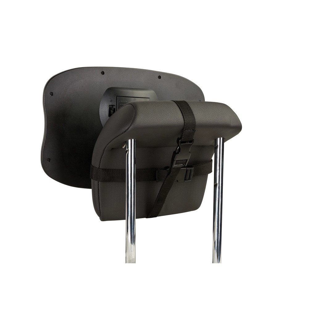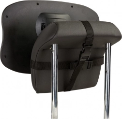 Verstelbare banden met gespen zorgen voor snelle montage op de meeste hoofdsteunen en een stevige, trillingsvrije bevestiging.
