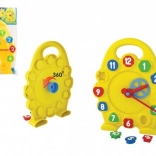 Elk kind leert graag, zolang het maar niet saai is. Met deze inlegpuzzel oefenen kinderen de fijne motoriek dankzij de in te leggen vormen met cijfers. Op een speelse manier maken ze kennis met het kloklezen; door mechanisch aan de grote wijzer te draaien, laat een tandwieltje ook de kleine wijzer meedraaien.