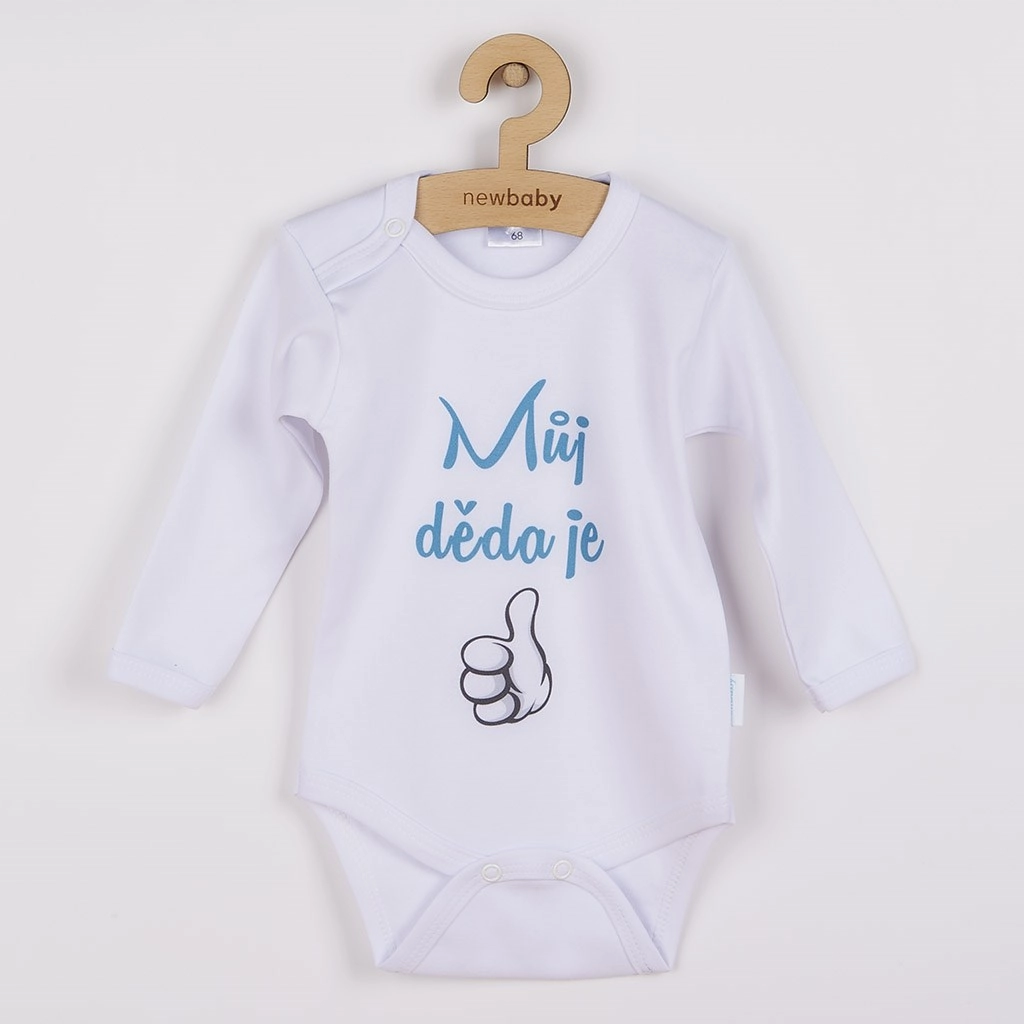 Schattige katoenen body met lange mouwen van het merk New Baby met de tekst Mijn opa is nummer één maakt zowel opa als baby blij. Gemaakt van 100% kwaliteitskatoen met gecertificeerde drukinkten die geschikt zijn voor kinderen. Praktische drukknoopsluiting op de schouder en tussen de beentjes maakt aankleden en verschonen makkelijker.
