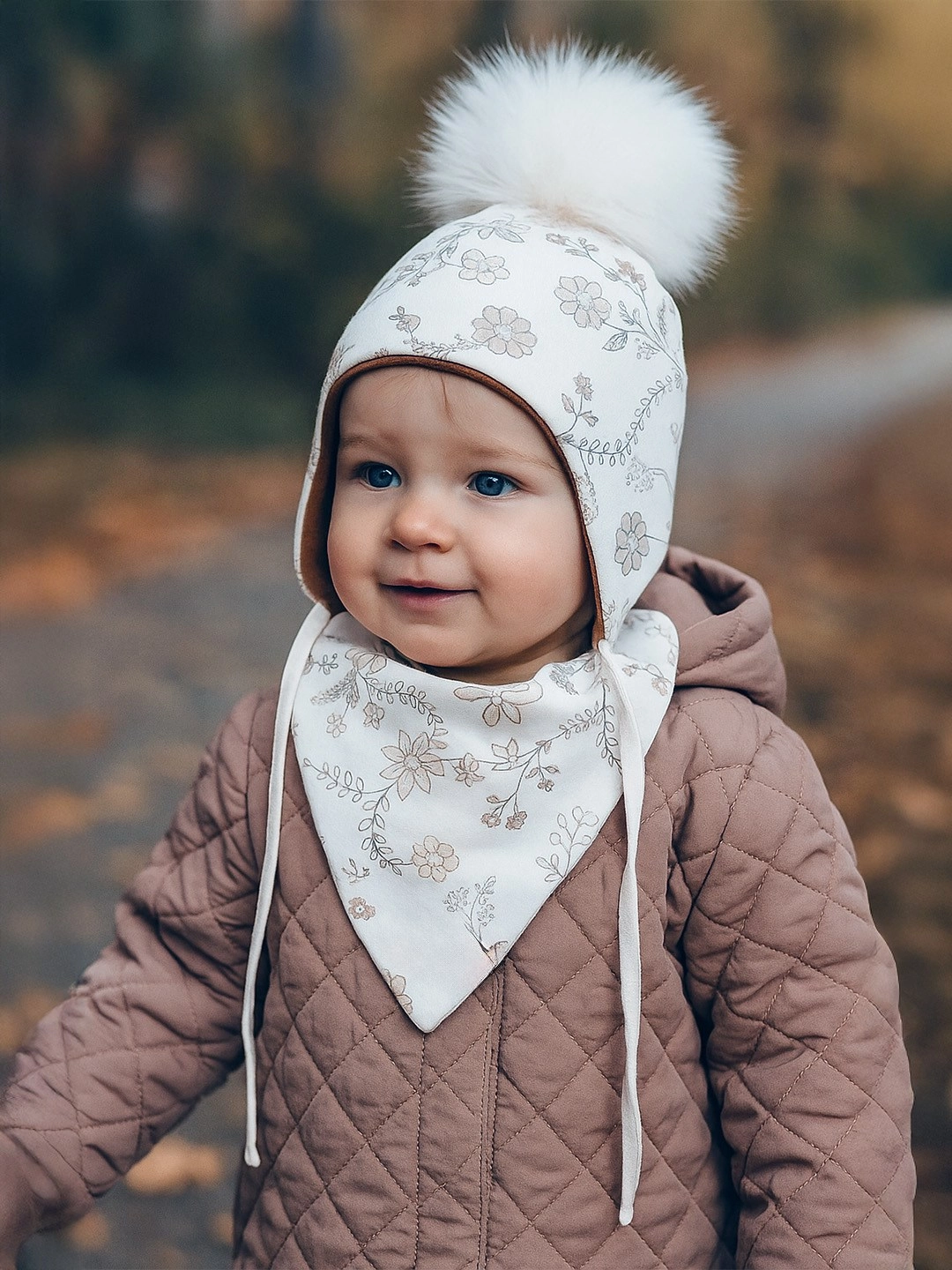 Ontdek de zachte en functionele set NEW BABY Special One – een muts met pompon en een halsdoek in een harmonieuze bloemenlook. De muts is gevormd over de oortjes, wordt veilig vastgeknoopt met linten en houdt dankzij de zachte voering heerlijk warm. De halsdoek beschermt tegen kou en vocht en groeit dankzij de dubbele sluiting met je baby mee.