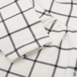 Hoodie en rok in een uniforme witte basis met grijs ruitpatroon voor een harmonieuze, elegante look.