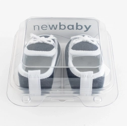 Stijlvolle baby slofjes in mocassin-look van het merk NEW BABY voor kindjes van 3–6 maanden. Superlicht, met een dunne synthetische zool en een brede binnenkant voor vrije beweging van teentjes en spieren. Niet bedoeld om mee te lopen, ideaal voor thuis en in de kinderwagen. Geleverd in een praktisch doosje.