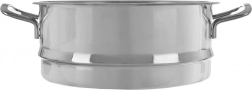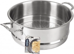 Praktische roestvrijstalen stoominzet met een diameter van 26 cm en een volume van 5,5 l om gezonde en sappige gerechten te bereiden – van groenten en vis tot gestoomde knoedels. Dankzij het stevige roestvrij staal, de geperforeerde bodem en twee veilige handgrepen is hij comfortabel in gebruik en eenvoudig te reinigen. Vaatwasmachinebestendig, past perfect op pannen met een diameter van 24 cm dankzij de geprofileerde buitenring die stoomverlies voorkomt.