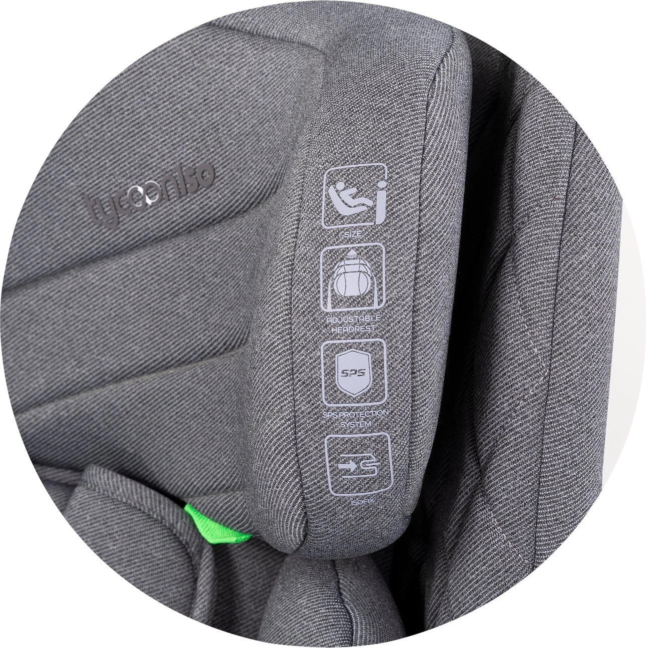 Het autostoeltje voldoet aan ECE R129 i-Size en voegt versterkte zijbescherming met SPS toe voor extra veiligheid bij zijdelingse botsingen.
