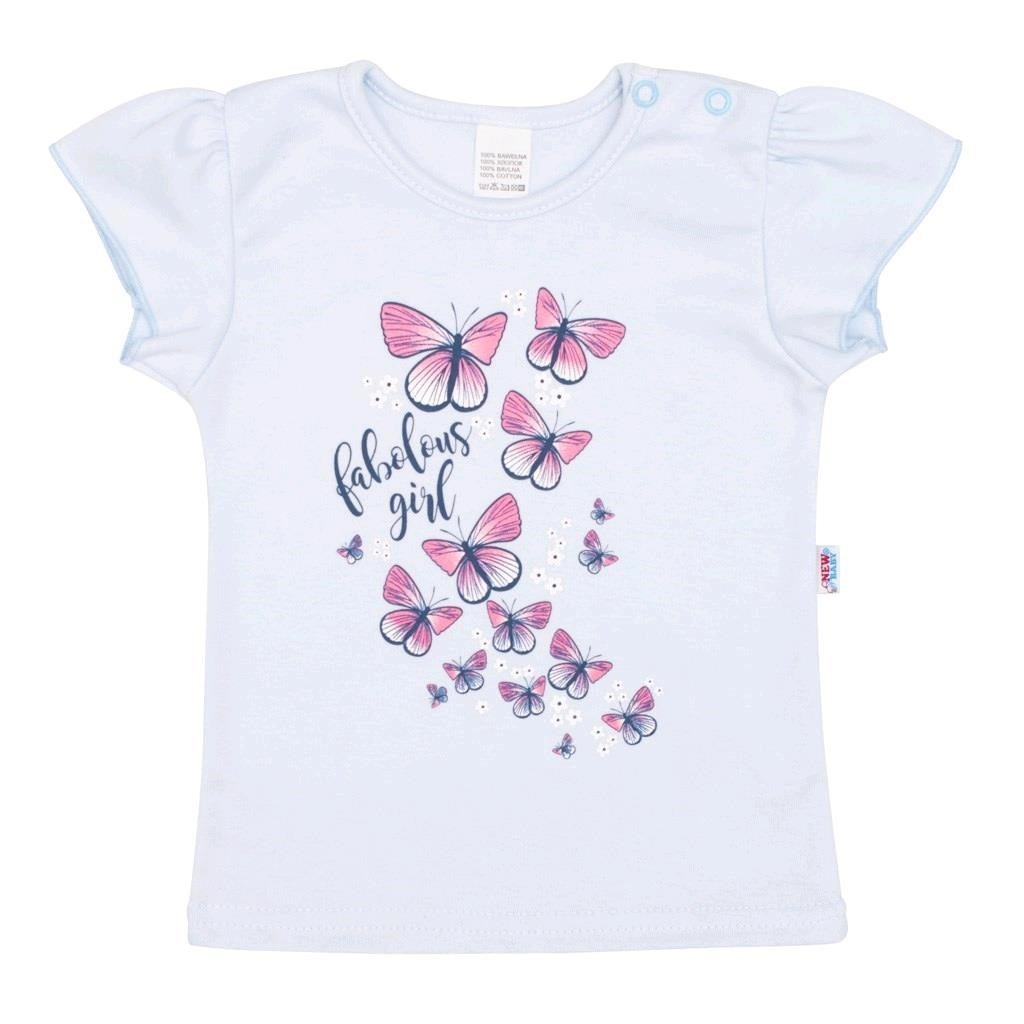 Schattige 2-delige meisjesset New Baby Butterflies die comfort en stijl voor elke dag combineert. Bevat een shirt met korte, geplooide mouwen en een donkerblauw rokje met volant. Praktische drukknopen op de schouder maken omkleden eenvoudig en de bredere elastiek in de taille knelt niet op het buikje. Aangename materialen met een hoog aandeel katoen zorgen voor zachtheid en comfort voor de gevoelige babyhuid.