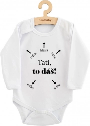 Katoenen romper met print New Baby Papa, jij kunt het! lange mouw