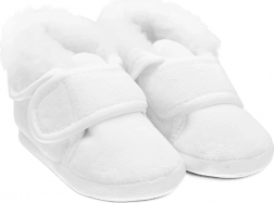 Zachte en warme babyslofjes NEW BABY, ideaal voor de wintermaanden en voor een feestelijke doop. Ze bieden een warme fleece voering, makkelijke klittenbandsluiting en een lichte, buigzame zool voor maximaal comfort voor je kleintje. De slofjes zijn niet bedoeld om mee te lopen, maar houden de voetjes heerlijk warm en comfortabel, thuis en onderweg.