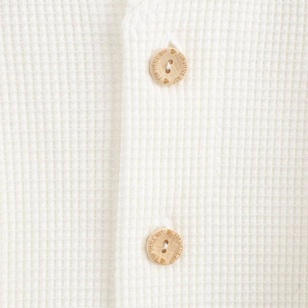 Stijlvolle houten knopen zorgen voor extra elegantie en het jasje vervangt gemakkelijk een vest voor zowel alledaags dragen als feestelijke momenten. Een uitstekende keuze voor baby’s van 9–12 maanden (maat 80).