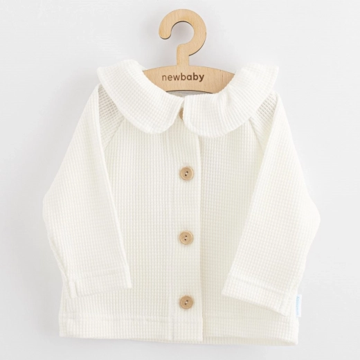 Elegante babyjas-cardigan New Baby Laura is ideaal voor dagelijks gebruik en feestelijke momenten. Hij heeft praktische knoopsluiting, een mooie kraag en stijlvolle houten knopen die zorgen voor een elegante uitstraling. Gemaakt van 100% katoen voor zachtheid, ademend vermogen en comfort het hele jaar door.