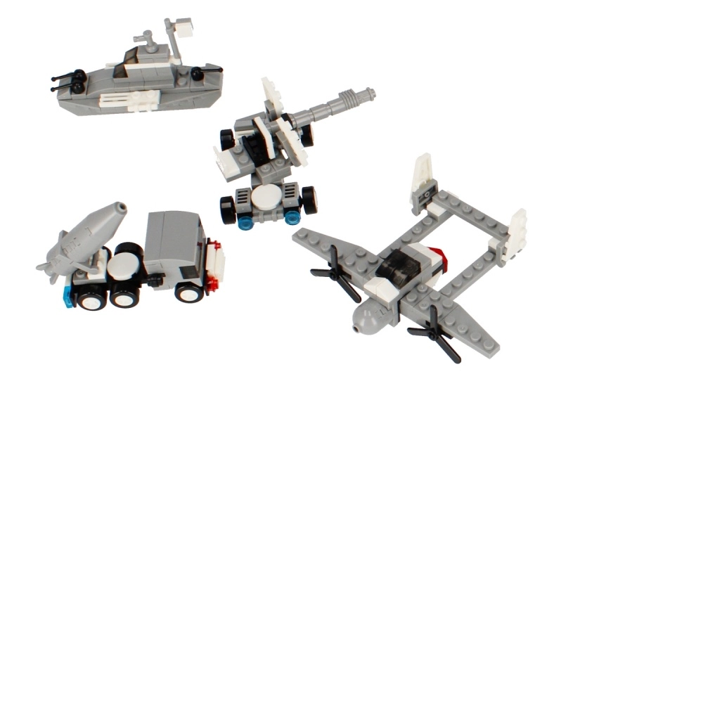 Ontdek een leuke bouwset met militair thema voor kinderen vanaf 6 jaar, die tot 3 verschillende modellen in één set biedt – auto’s, kanonnen, boten of vliegtuigen. Elke verpakking bevat 62–67 onderdelen en een duidelijke montagehandleiding. Dankzij bewegende elementen (wieltjes, propellers, draaibare lopen) ontwikkelen kinderen creativiteit, fijne motoriek en beleven ze uren bouwplezier. Keuze uit 4 varianten, prijs per stuk.
