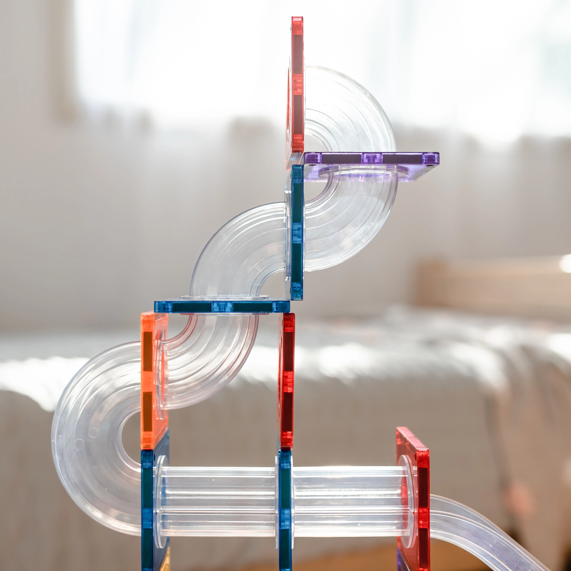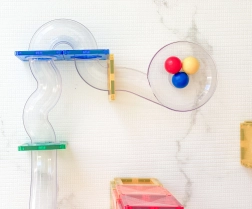 Helder buiswerk, bochten, S-vormen en Y-splitsingen maken het mogelijk de beweging van knikkers te volgen en snelheid, zwaartekracht en oorzaak-gevolg te onderzoeken bij verschillende opstellingen.