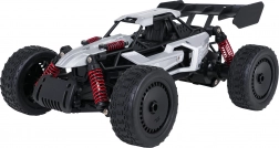 Dankzij de 2,4 GHz-frequentie is er geen storing, zodat u tegelijk met andere modellen kunt rijden. Variabele besturing en grote rubberen banden maken precieze manoeuvres en zeker bochtenwerk mogelijk. In de verpakking vindt u een oplaadbare 7,4 V-accu en een USB-kabel voor gemakkelijk opladen.