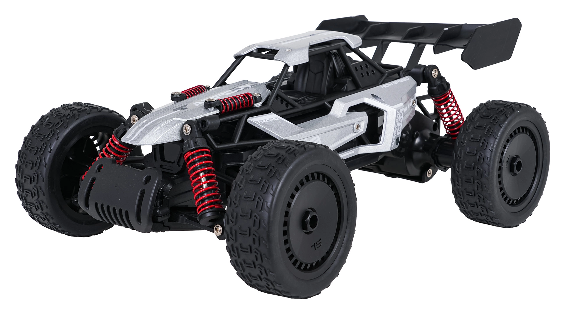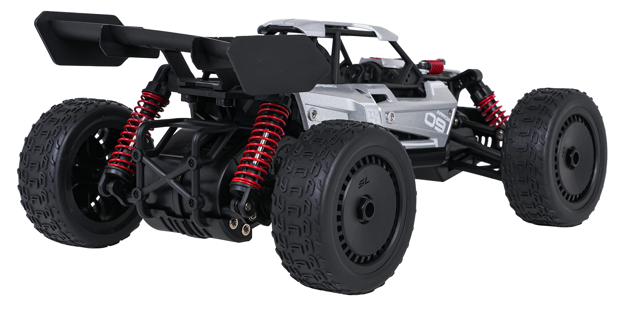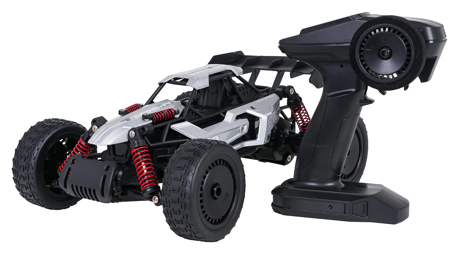 De RC-buggy ARROW is een snelle en duurzame terreinwagen, ontworpen voor plezier op en naast de weg. De metalen carrosserie en schokbestendige constructie beschermen de auto bij rijden in uitdagend terrein, terwijl vierwielaandrijving (4x4) en geveerde ophanging zorgen voor uitstekende tractie, stabiliteit en vloeiende controle.