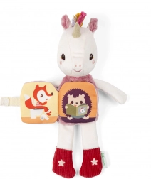 Maak kennis met eenhoorn Lena – een knuffelige vriend voor rustig inslapen en dagelijks ontdekken. Met het stoffen prentenboekje op haar buik genieten jullie samen van de eerste verhaaltjes, terwijl lichtgevende sterretjes een knusse sfeer creëren zodra het licht uit is.
