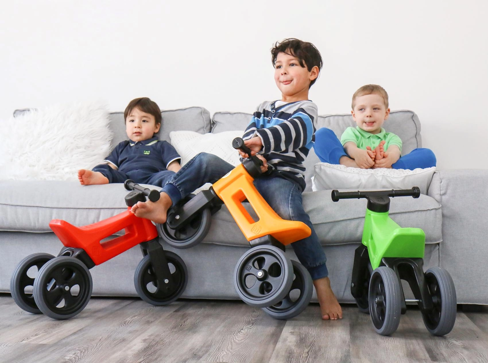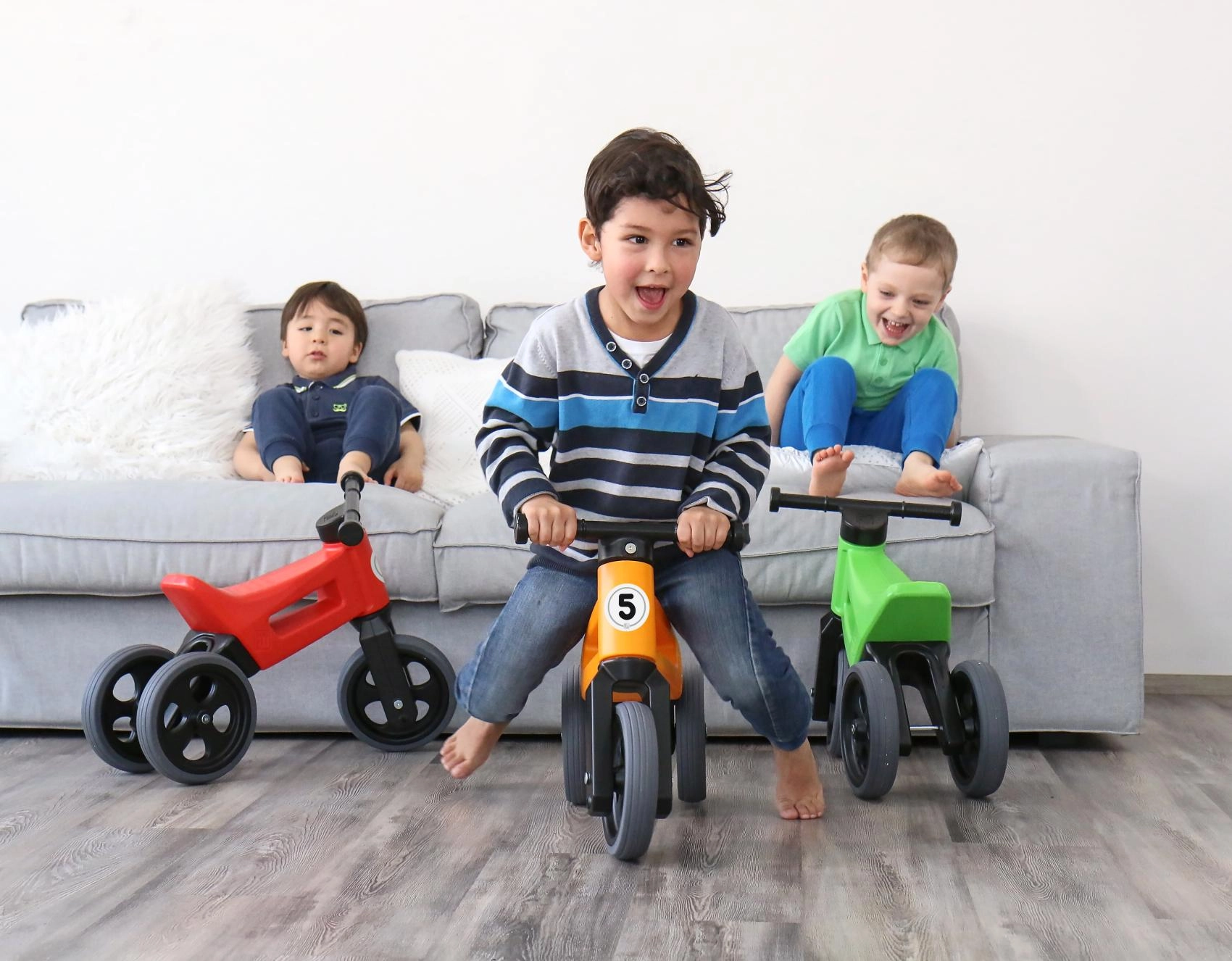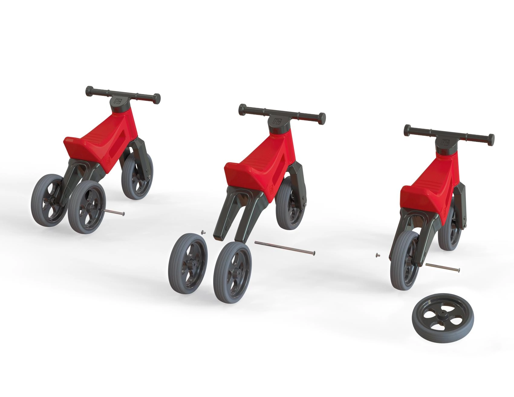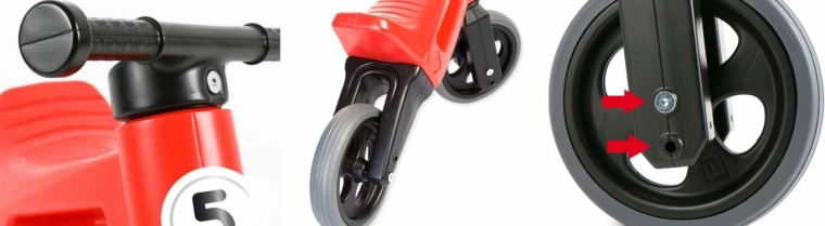 In enkele minuten verander je een stabiele driewieler in een tweewielige balansloopfiets. Ideaal als overgang naar de eerste fiets.